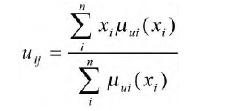 用最大- 最小合成法,可以求出 Umn,然后采用加權(quán)平均法做清晰化計(jì)算得出判斷結(jié)果: