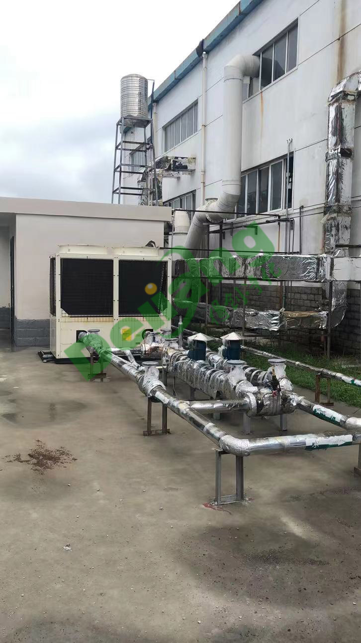 冷凍水型機組:采用7℃左右的冷水作為冷源,通過電動閥開大或者關小來控制水流量,從而輕易控制制冷量,而電動閥結構象家用水龍頭一樣簡單,所以故障率幾乎為零,控制效果最為穩(wěn)定。通合理計算房間的熱濕負荷和空氣露點來匹配好風量、冷量、加熱量、加濕量,在通過PLC控制各個部件的無級調(diào)控,在選擇靈敏度高線性好的傳感器,可以做到溫度±0.1℃,濕度±1%以內(nèi)。此種方式需要通過每個實驗室的實際面積和負荷來進行計算匹配,所以沒有標準成型機組,都為定制加工型。一般都用組合式空調(diào)箱組合配比來實現(xiàn),所以缺點是占地面積較大。