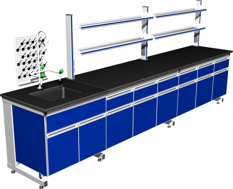 鋼木邊臺臺面 采用美國威盛亞12.7mm厚實芯理化板的臺面,周邊加厚處理;其余實驗臺面外表采用黑色貼面理