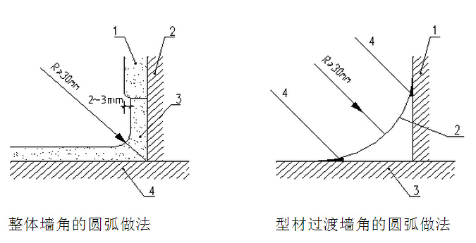 整體墻角的圓弧做法 型材過渡墻角的圓弧做法