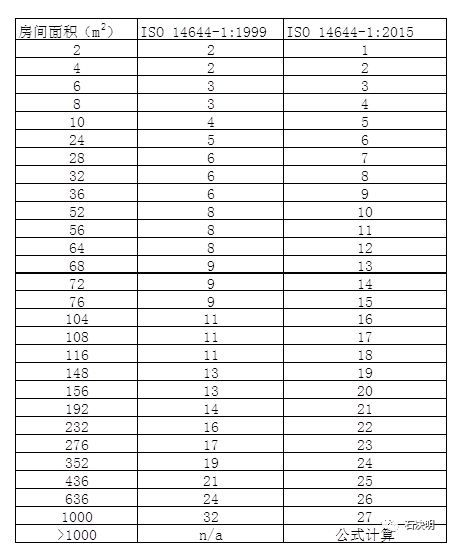 考慮到粒子的空間分布的新理論,ISO14644-1在采樣點數(shù)目上面進(jìn)行了較大改動。結(jié)合標(biāo)準(zhǔn)具體內(nèi)容,可以看到如下的幾個變化。