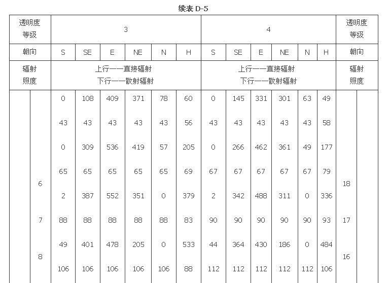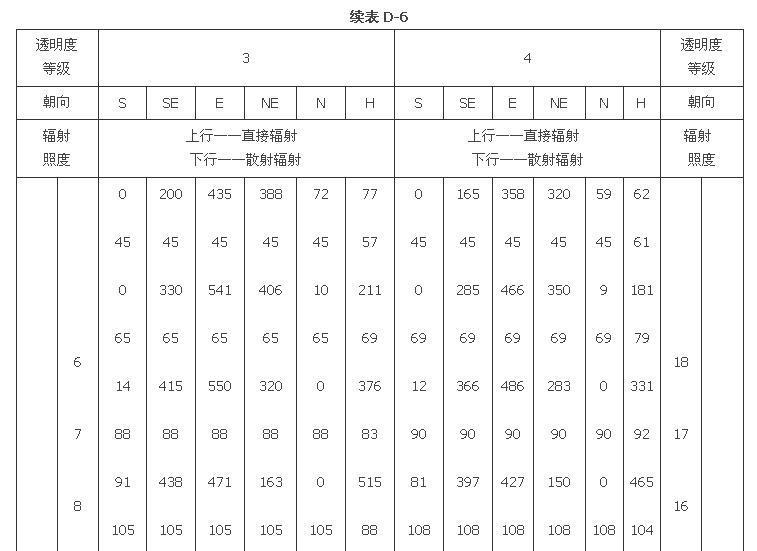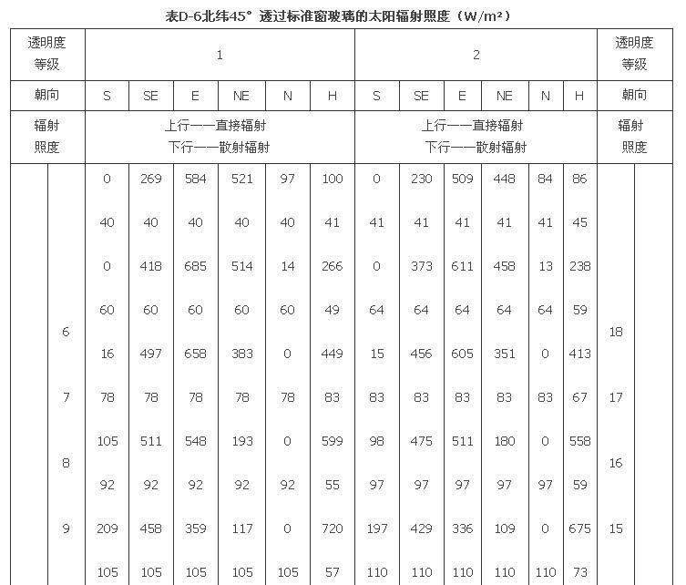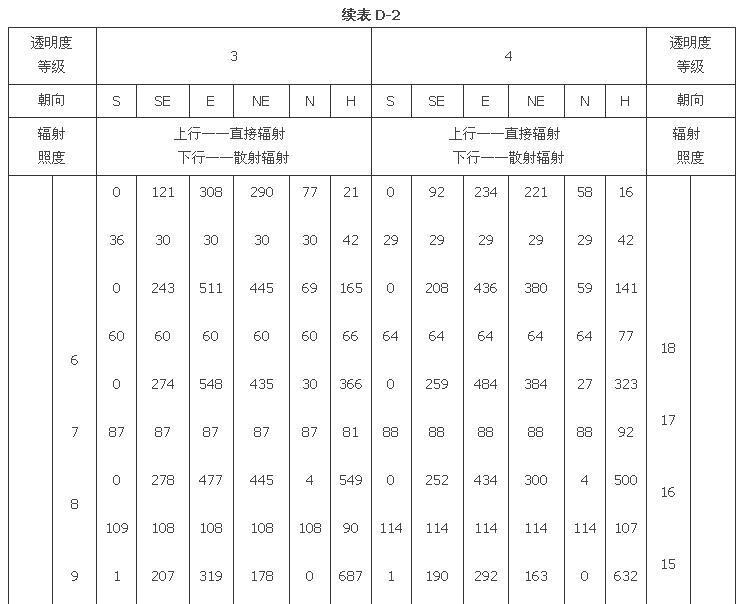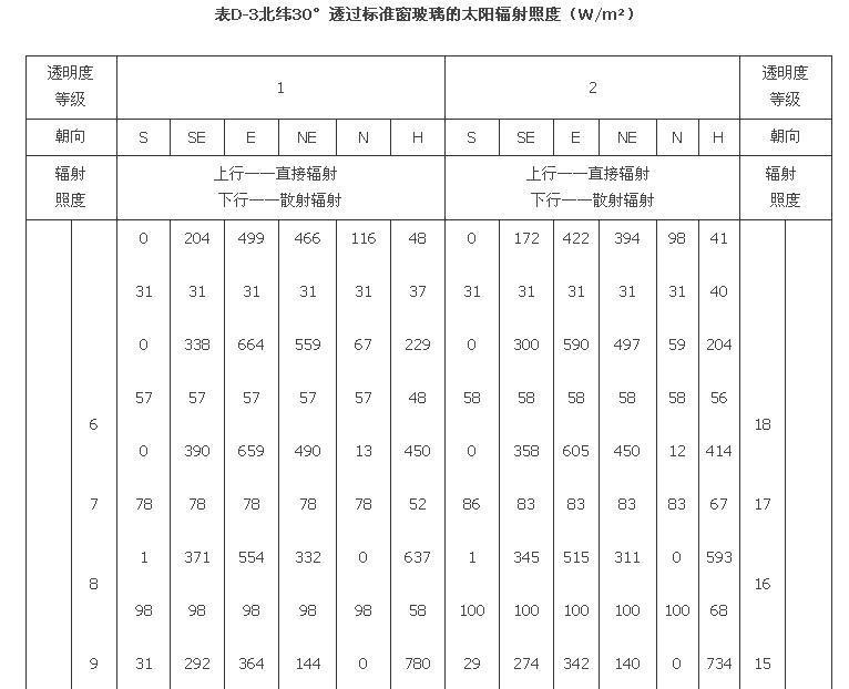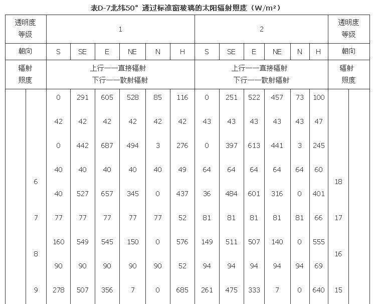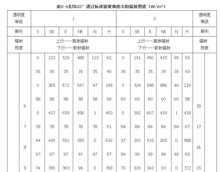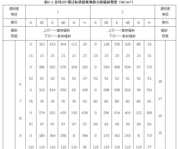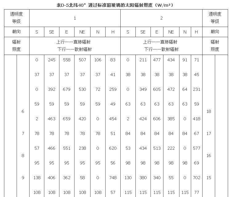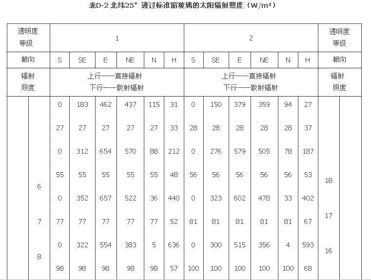 附錄D 夏季透過標(biāo)準(zhǔn)窗玻璃的太陽輻射照度
