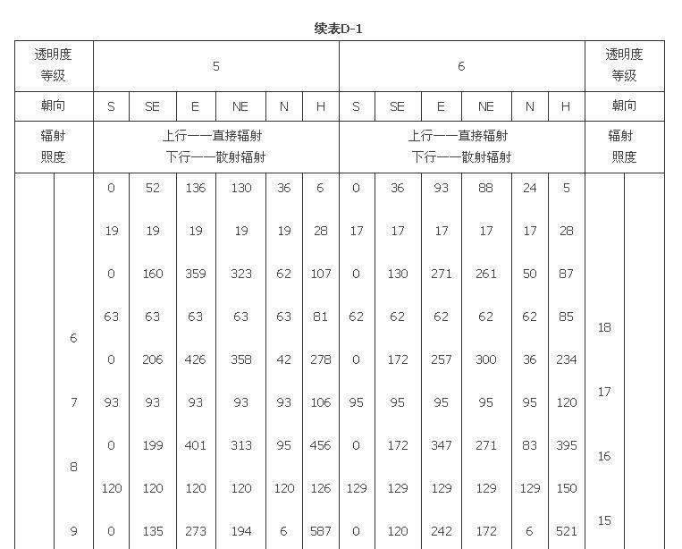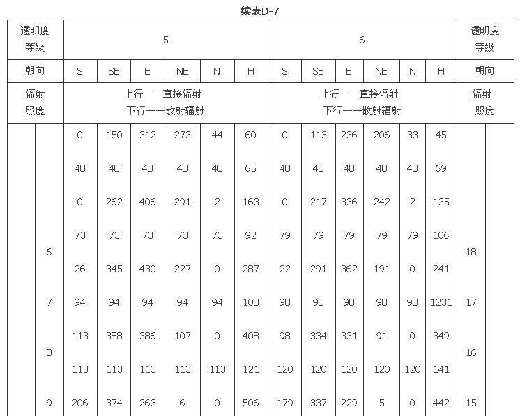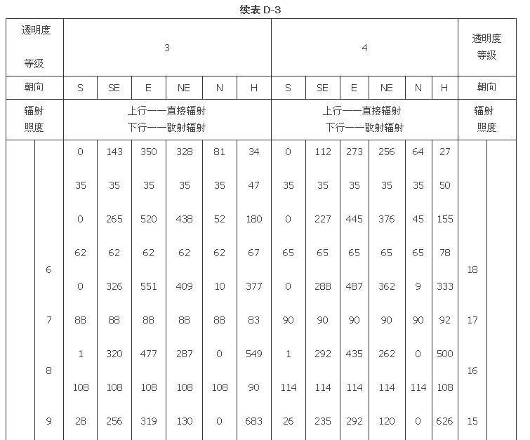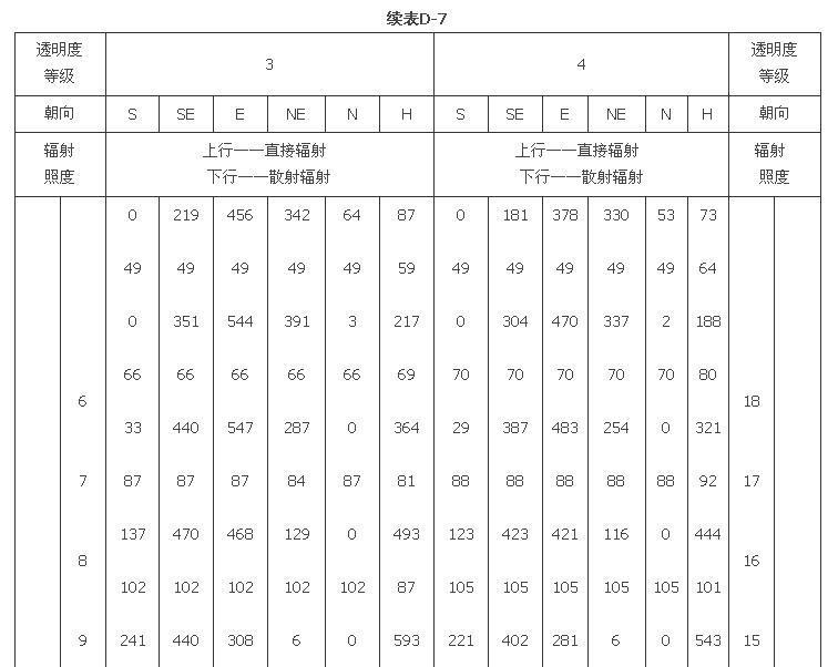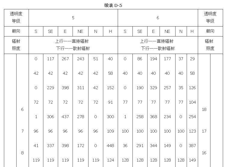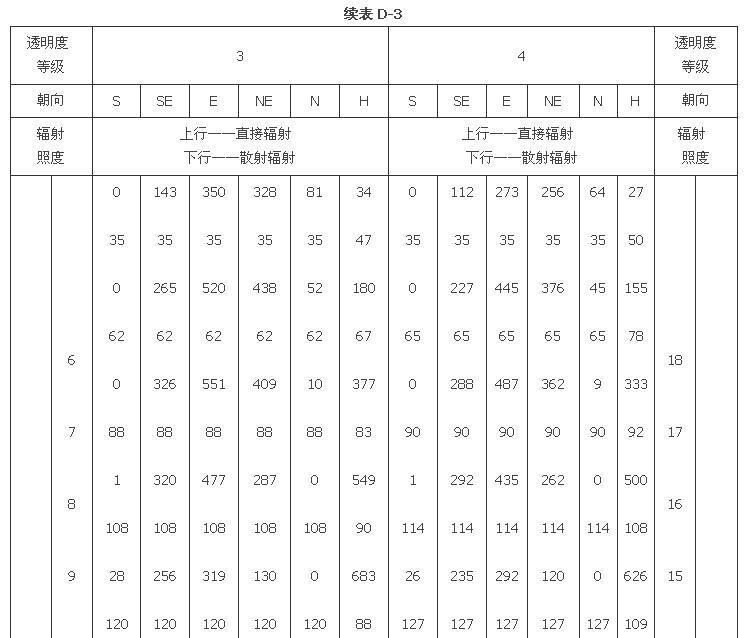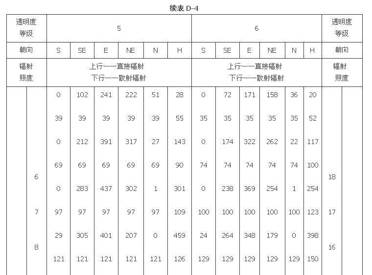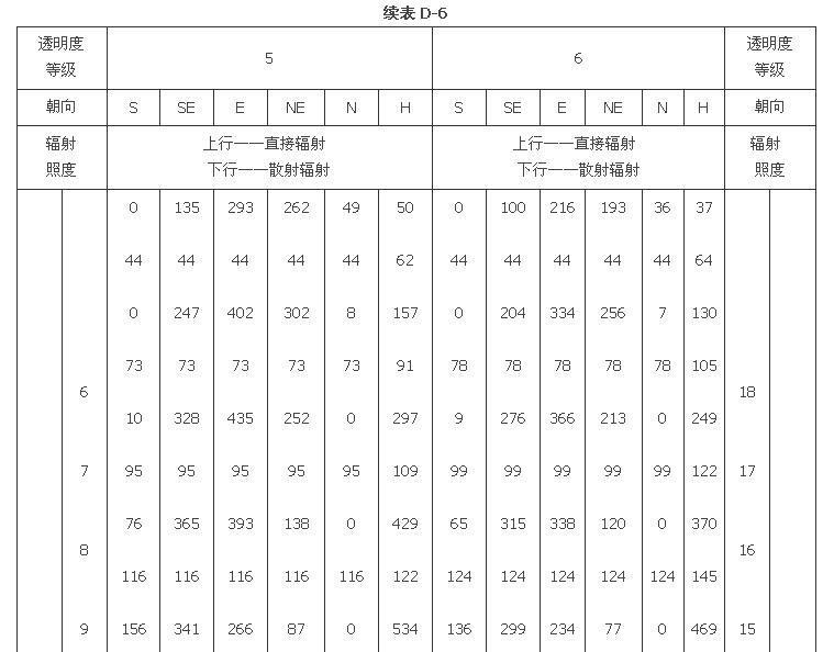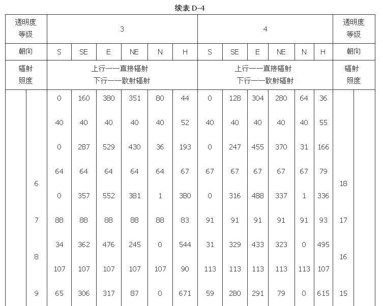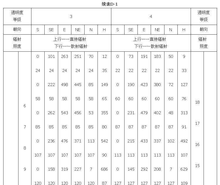 附錄D 夏季透過標(biāo)準(zhǔn)窗玻璃的太陽輻射照度