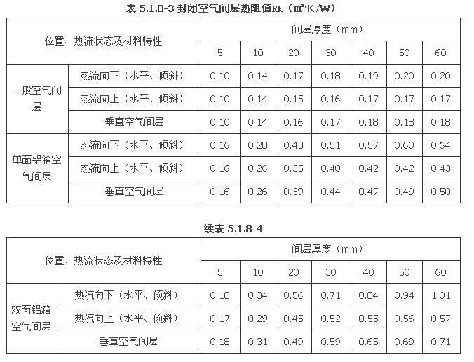 Rk――封閉空氣間層的熱阻(.K/W),按本規(guī)范表5.1.8-4采用;