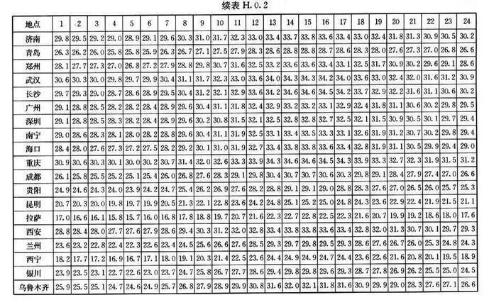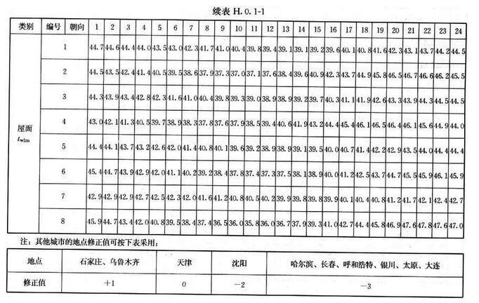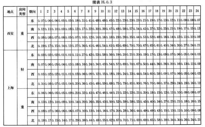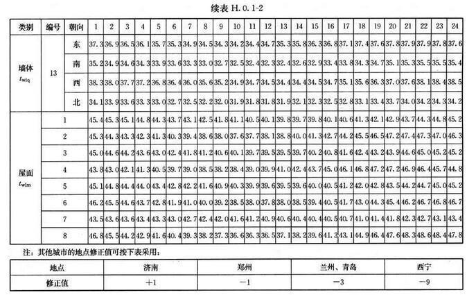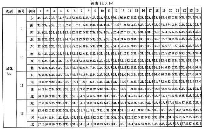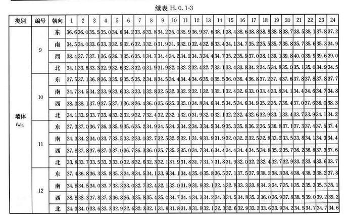 H.0.2 外窗傳熱逐時冷負(fù)荷計算溫度twlc,可按表H.0.2采用。