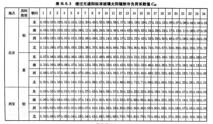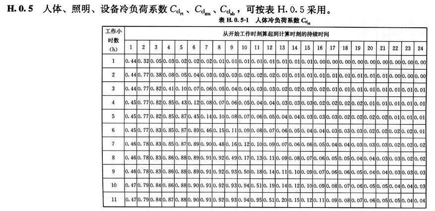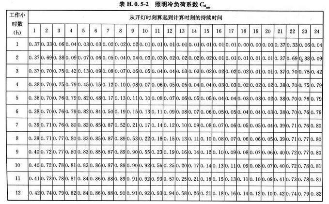 附錄H 夏季空凋冷負(fù)荷簡化計算方法計算系數(shù)表