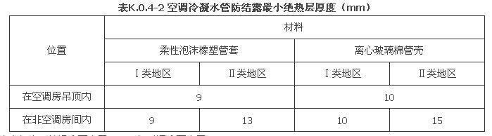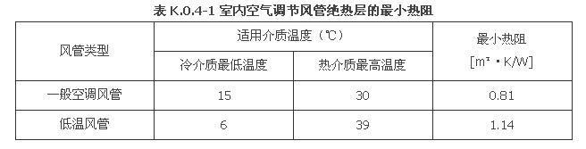 K.0.4 空調(diào)風(fēng)管絕熱熱阻與空調(diào)冷凝水管道保冷厚度可按表K.0.4-1和表K.0.4-2選用。