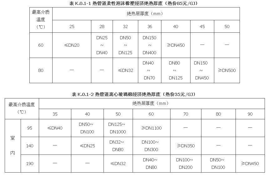 附錄K 設(shè)備與管道最小保溫、保冷厚度及冷凝水管防結(jié)露厚度選用表