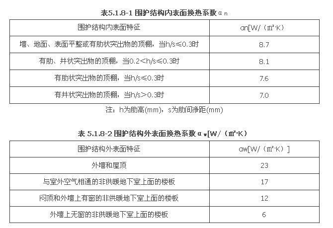αn――圍護(hù)結(jié)構(gòu)內(nèi)表面換熱系數(shù)[W/(.K)],按本規(guī)范表5.1.8-1采用;