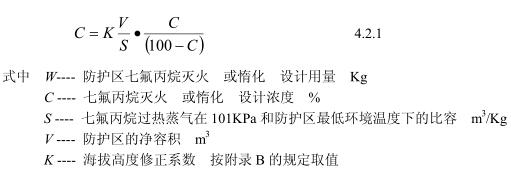 第4.2.2條 七氟丙烷在不同溫度下的過熱蒸氣比容,應(yīng)按下式計算: