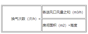 換風次數(shù)的算計是將每個小時的總送排風量除于屋子的室內(nèi)空間容積,籌算公式計算為: