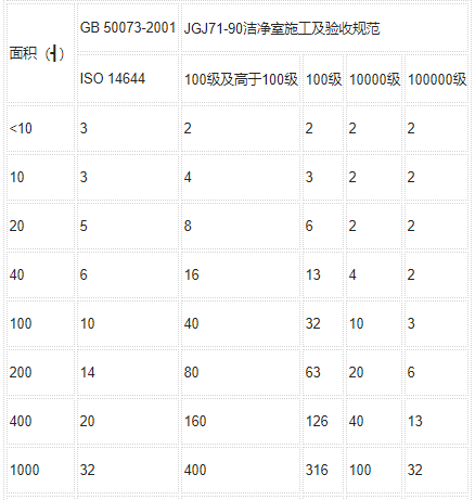 而差別潔凈度級(jí)其他取樣差別,關(guān)鍵體現(xiàn)在點(diǎn)射的取樣空宇量的多個(gè)上。