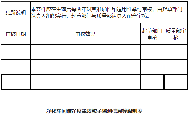 4.6理應制定適度的漂浮顆粒和微生物菌種檢測警示和糾偏裝置程度。安全操作規(guī)程中理應詳細描述實際效果超標準時必須接受的糾編對策。