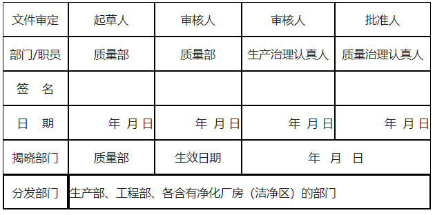 3、責任者:凈化車間(潔凈區(qū))的檢測員工,生產(chǎn)技術部,技術部,質(zhì)量部,各凈化車間(潔凈區(qū))的主管機構。