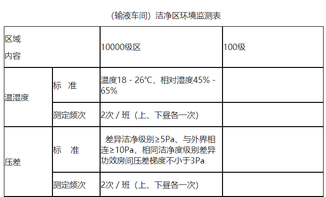 4.7凈化車間(潔凈區(qū))的溫濕度記錄、壓力差線上舉辦監(jiān)管;風力、排風量或換風次數(shù)每月檢測一次;光照強度、噪音每一年檢測一次。