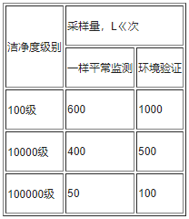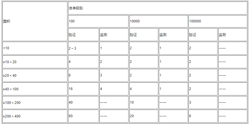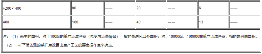 注:(1)表格中的總面積,針對100級的單邊流潔凈室(包含層.流事兒臺),指的是正壓送風口外總面積;針對10000級、100000非單方面流潔凈室,指的是屋子總面積。